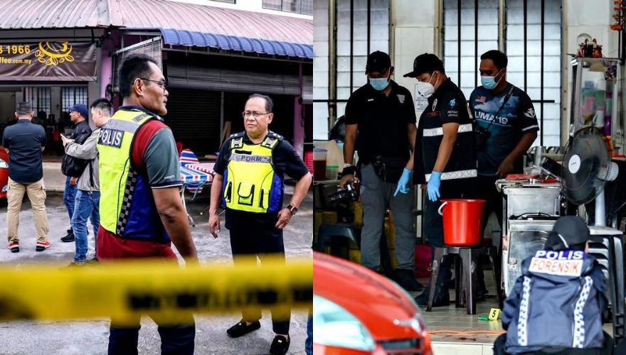 柔佛哥打丁宜成功花园一间食肆外,下午1点40分左右,空气突然被几声枪响撕裂。原本在吃饭、聊天的人瞬间愣住,有人还没反应过来,就已经看到3个人倒在地上,一动不动。